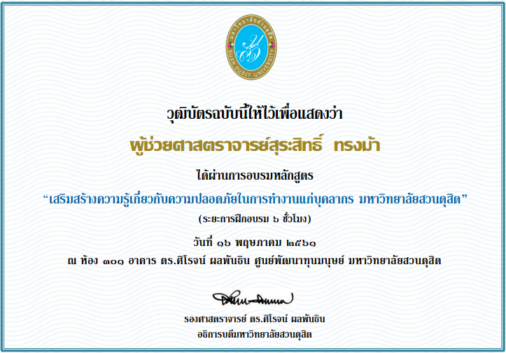 61-05-16_Certอบรมเสริมสร้างความรู้ความปลอดภัยบุคลากร มสด โดยมสด