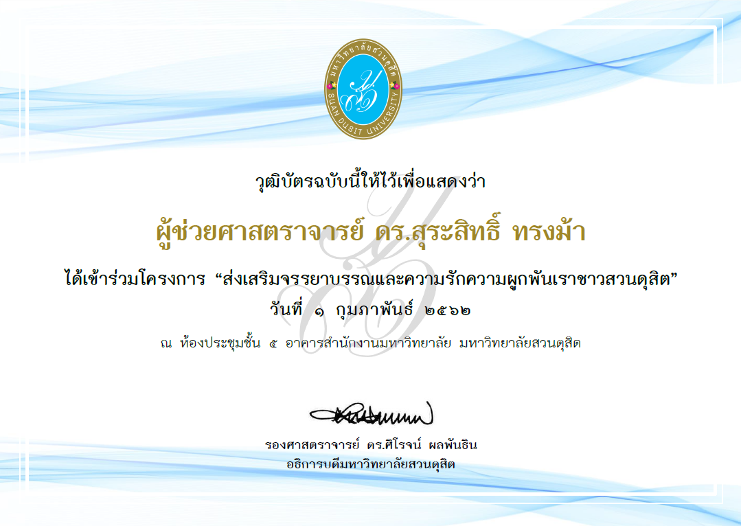 62-02-01_Certอบรมส่งเสริมจรรยาบรรณ ความรักความผูกพันชาวสวนดุสิต โดยสภาคณาจารย์