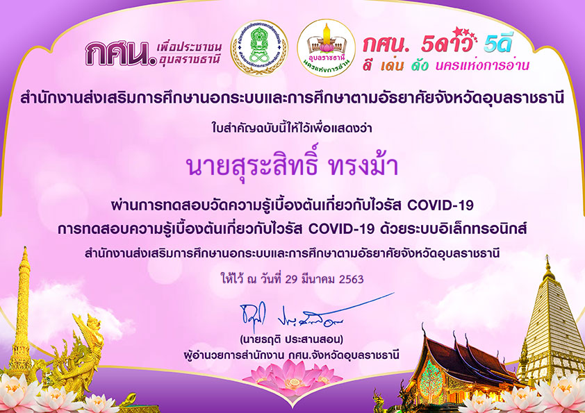 63-03-29_Certผ่านการทดสอบ-ความรู้Covidโดยกศนอุบลราชธานี