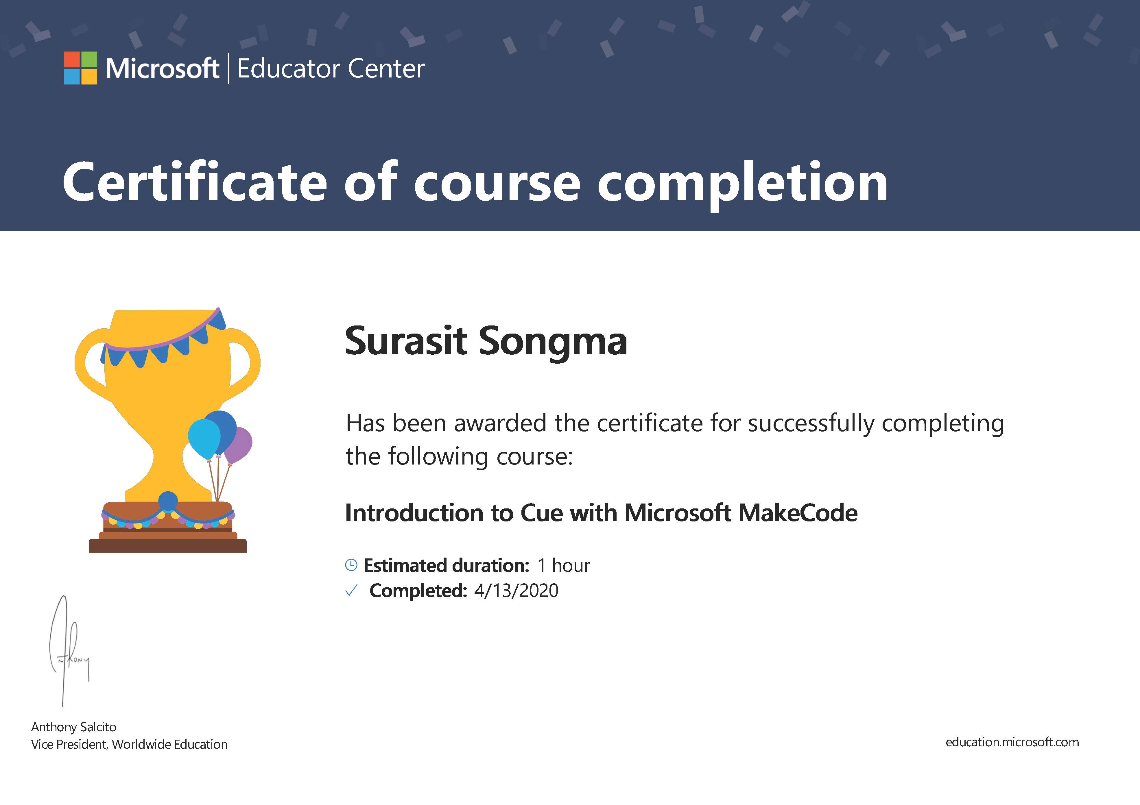 63-04-13_Cert_Microsoft-Introduction to Cue with MS MakeCode