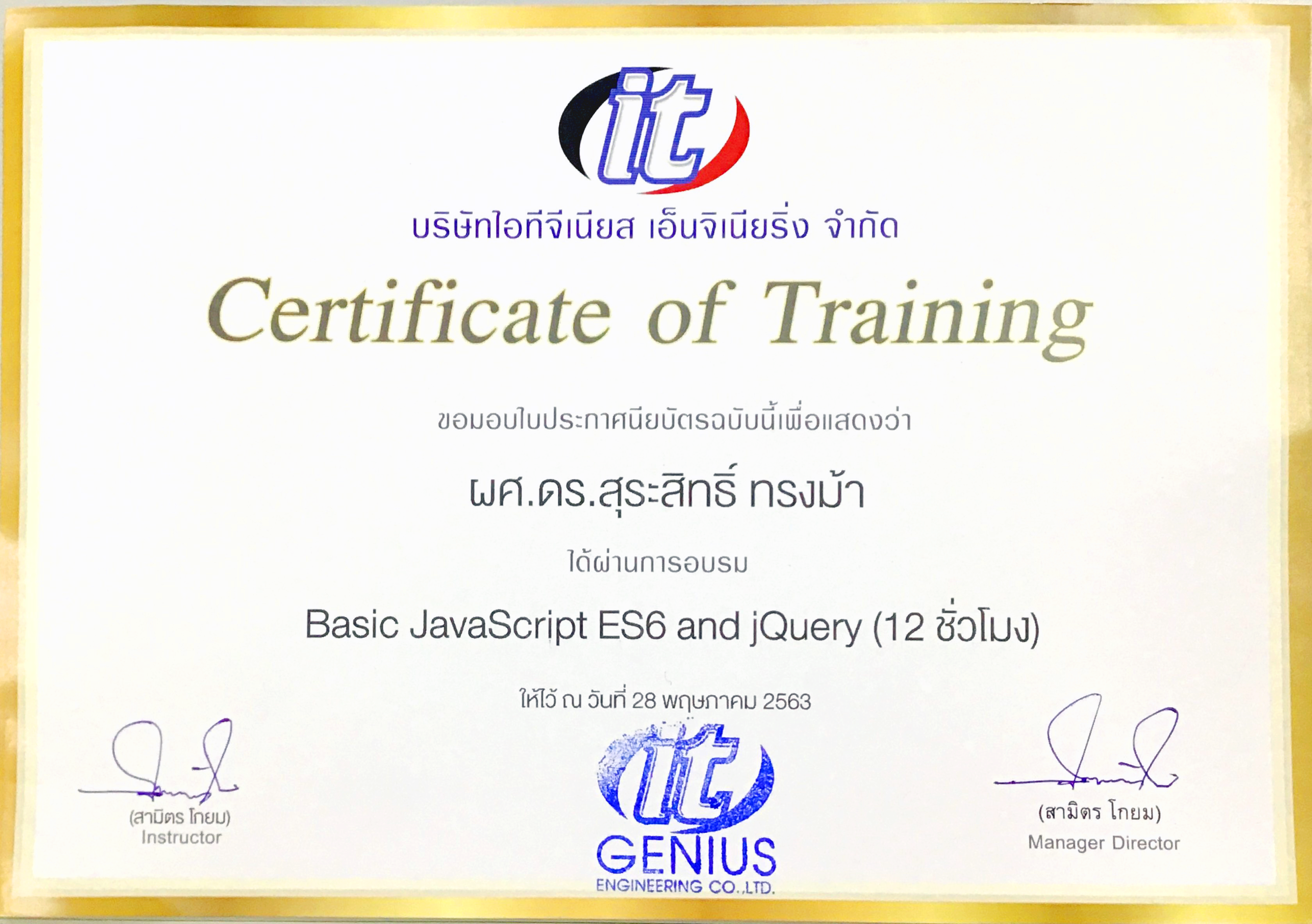 63-05-28_CertอบรมBasic JavaScript ES6 and JQueryโดยItgenius